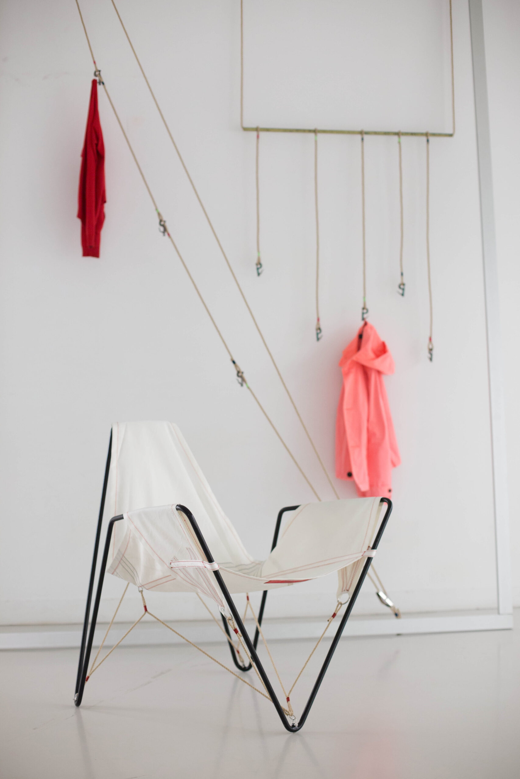 The company avoids using the material as a lining or upholstery. On the contrary, the idea is that the material stays in tension, working the same way as when it was used for sailing, giving back this way its dignity.